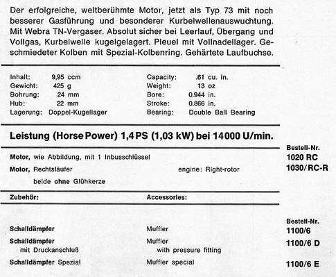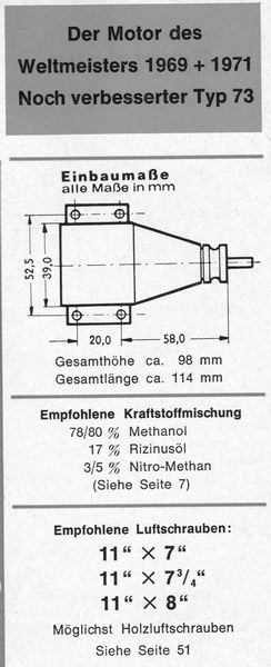 Publicité du constructeur parue dans une revue en 1956. Tiré du livre d'Holger MENRAD, deutsche modellmotoren teil 2.