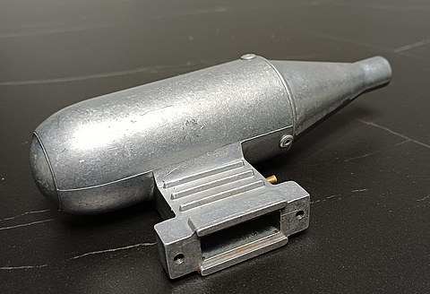 Le premier modèle de silencieux, on voit bien la prise d'air circulaire située à l'arrière.