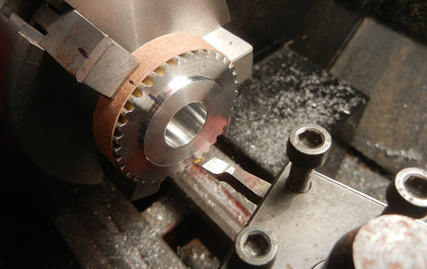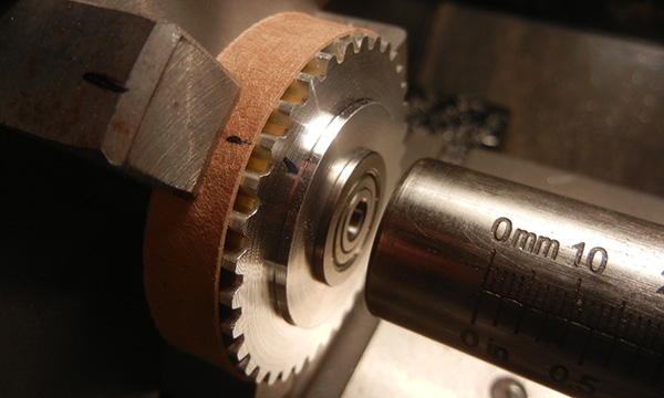sans trop forcer… un peu de travail du métal sur la grosse poulie de 35 dents sur laquelle sera montée l'hélice sur un moyeu déporté
