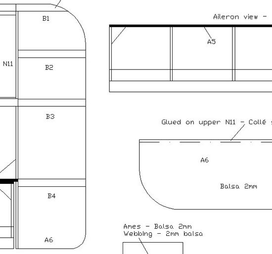 Tu dois coller la piece en balsa de 2mm qui a la forme du saumon sur la derniere nervure (N11) (Faut humidifier le balsa pour que la planche épouse bien le galbe de la nervure)