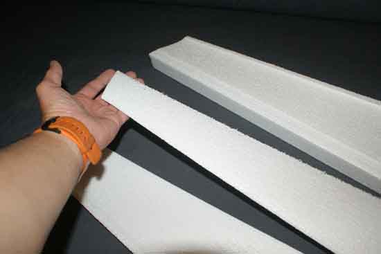 Habillage en polystyrène extrudé de la structure en tube, plus un peu d’huile de coude pour arriver à la forme finale. le tout sera recouvert de scotch d'emballage copieusement ciré