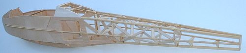 Le croisillonage en balsa est collé en retrait des longerons principaux, afin que l'entoilage ne colle pas dessus, ceci pour garder l'aspect de la toile tendue sur tube. |