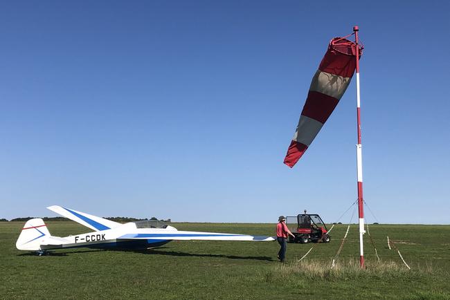 Le 8 septembre 2025, le nouveau certificat de navigabilité (européen : CEN-EASA) a été revalidé par un PEN du G-Nav : le Scheibe Bergfalke II/55 Werk-Nr. 207 F-CCDK est officiellement reclassé en situation V, en état de vol, pour une année. Dorénavant il sera ainsi « contrôlé » chaque année en septembre, le régime de droit commun. Son dernier reclassement datait de 2005… Avec l’équipe de l’Amicale Éric Nessler, dont Rémi Caillou, le président, s’est investi sur ce « dossier Bergfalke », le planeur est transporté sur le terrain de Buno-Bonnevaux, fief de l’AAVE, l’Association aéronautique du Val d’Essonne, pour pouvoir s’envoler, c’est-à-dire effectuer le ou les vols dits « de sortie de visite ». Si le planeur est légalement en état de vol, il faut bien le vérifier dans la réalité physique ! Il n’y a pas d’avion remorqueur disponible sur le terrain de la Ferté-Alais, et les relations sont excellentes entre l’AAVE et l’AÉN… Le 19 septembre 2025, tout est prêt à Buno, sauf la météo, il fait beau pour le commun des mortels, mais l’atmosphère est stable, sans ascendances. Qu’importe, c’est le temps idéal pour des vols d’essais, si courts soient-ils. En emmenant le planeur en piste, force est de constater que la roue est dégonflée, la chambre à air a rendu l’âme. Après conciliabules, il est décidé de se passer de la roue litigieuse, et de se contenter du patin. Après tout, pendant longtemps les planeurs n’avaient pour atterrisseur qu’un simple patin, et procéder ainsi n’a aucunement gêné les opérations, surtout que l’AAVE utilise comme remorqueurs des puissants Piper Pawnee de 235 ch ! Deux vols d’un quart d’heure ont sufi pour démontrer les qualités de vol du Delta-Kilo, avec pour conclusion : il vole bien ! Hasard heureux du destin : les « premiers envols » de 2025 ont eu lieu exactement 20 ans jour pour jour après le vol précédent, remontant au 19 septembre 2005. Ce vol-là s’était déroulé à Rouen, avec pour équipage François-Louis Henry, une icône du vol à voile français (champion du monde 1965 à South Cerney sur Edelweiss et champion de France 2000) et Jean Molveau. Sans roue, le BF-II/55 est resté à Buno le temps d’approvisionner une chambre à air. Et c’est avec la roue, « au complet », que le vénérable faucon des montagnes a effectué trois courts vols (encore des conditions sans ascendances thermiques…), à la grande satisfaction de l’équipe, le 27 septembre 2025. Une bien belle journée, le Fox-Charlie-Charlie-Delta-Kilo a volé et volé bien. Le soir venu, la relique a retrouvé sa remorque pour l’hivernage dans le hangar de l’Amicale Éric Nessler à la Ferté-Alais. Quelques attentions et réglages sont au programme avant la prochaine saison. Pour ses 70 ans, le vieux faucon des montagnes a retrouvé l’azur. Une nouvelle aventure commence!