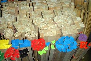 ![]() ![]() ![]() Le tronc fait alors 40 cm de diamètre, et 10 mètres de long, il est redébité en tronçons d'un mètre et scié en madrier de 10cm x 10cm. Les madriers restent en étuve 3 semaines, à ce stade ils ont perdus 50 % de leur poids, et là, s'effectue la sélection. Seulement 25 % de la production va au modélisme (la meilleur part: le coeur de l'arbre). Le reste est utilisé comme isolant phonique et thermique, l'industrie aéronautique l'utilise pour les planchers d'avions et les navires transportant des gaz liquifiés l'utilisent comme isolant thermique.