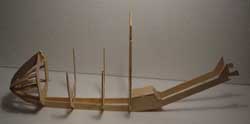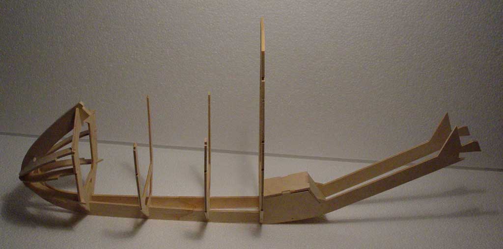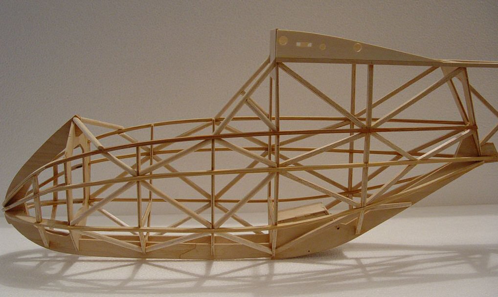 Voilà, comme promis, j'ai commencé l'étréssillonage, en débutant par la queue, ce qui renforcera le modèle et me permetra de le manipuler plus aisement. |