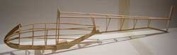 | Après avoir tout contrôlé et corrigé 2-3 petits problèmes, vite corrigé en ponçant. J'ai débuté le collage. Le ceintrage des longeronts se fait sans problème en les mouillants, comme expliqué sur la page de Vincent. |