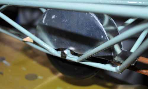 Le garde boue est tiré d'une plaque de tôle offset découpée aux ciseaux et collée à la PL 300.