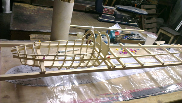 Rumpf, Hohenrudder und Seitenrudder wird nach Plan vom Detlef Draheim. Die flächen nach meinen Art.
