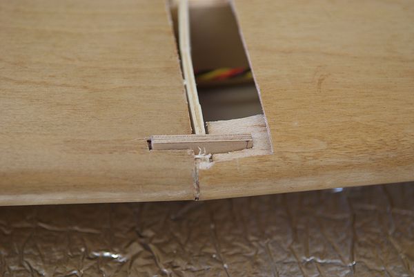 Je profite d'avoir désentoilé l'aile et rigidifié le bord de fuite qui commencait à "gondoler". En ajoutant du ctp de 10/10 collé à la colle blanche...