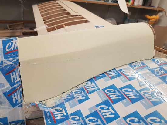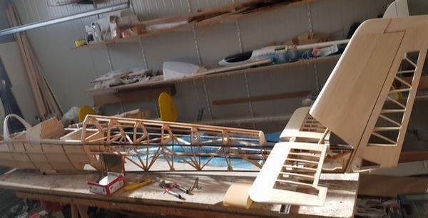 les ailes sont terminés, prêtes au ponçage avant entoilage; la mise en croix du stab et dérive est faite ;