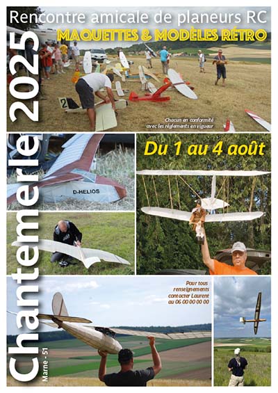-OU, à défaut de maquette (ou en plus pour les petites conditions), apporter et faire voler au moins un planeur de type oldy IMPERATIVEMENT DE CONSTRUCTION PERSONNELLE (éventuellement motorisé pour ceux qui le voudraient), comme les Bannsperber, Lépréchaun, Tauveron, Sinbad, Hast,... voire un oldy de conception personnelle.