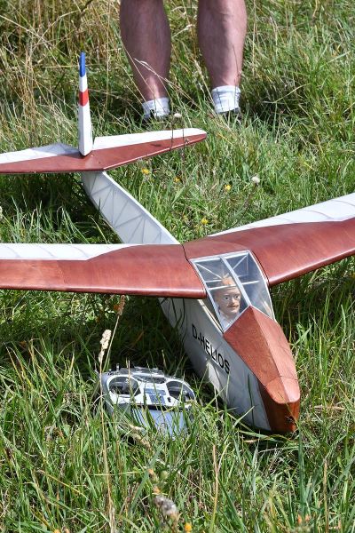 Voici quleques photos. Il y avait un pilote, David l'a enlevé car il a fallu reculer le centrage, la finesse était vraiment trop faible avec lui Wink