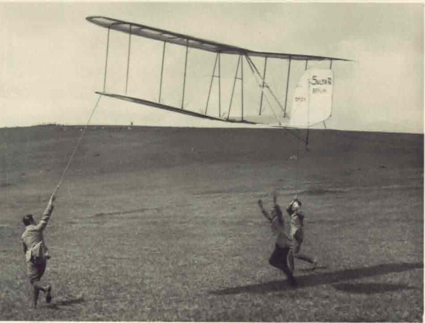 Le Dr. Martin Sultan, connu des anciens pilotes de planeur de la Rhön 1920/21, a construit un un planeur à voiles musculaires.