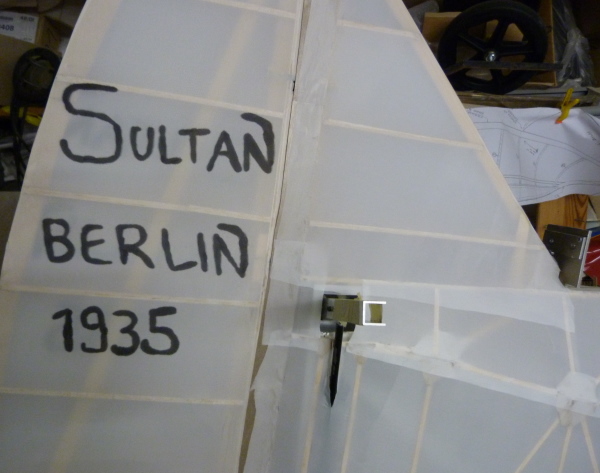 Les ailes, qui étaient à l'origine fabriquées à partir de nervures de frêne, n'ont pas résisté. ne pouvaient pas supporter une telle sollicitation. Sultan a maintenant utilisé des tubes de Tonkin, qui se sont avérés très élastiques. se sont révélés extraordinairement élastiques. La machine fait très bonne impression. bonne impression. On attend avec impatience les essais.