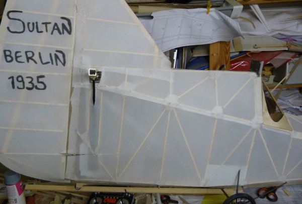 Hier die Beschriftung und die Verkleidung der Tragfläche.