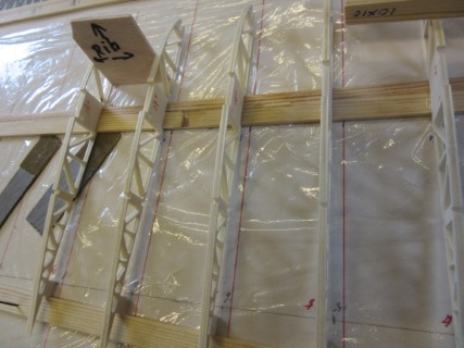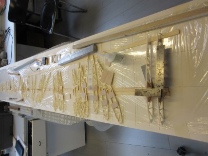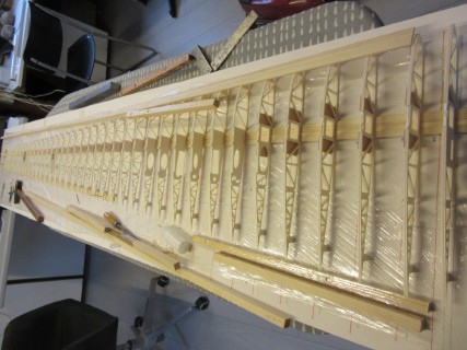 The ribs are vulnerable at this stage. , I have strengthened the ribs at the wing joiner.