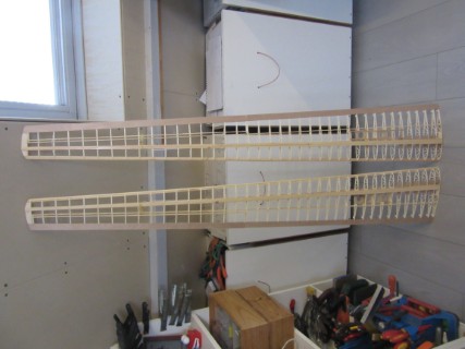 First the centre section 60mm wide, two ribs connected with some sturdy 3.5mm plywood .