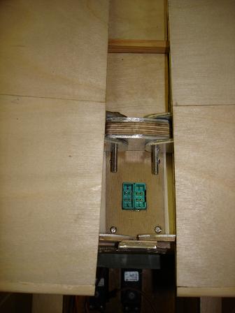 Die vordere Verdrehsicherung ist fertig gebohrt. Man sieht auch die Stecker - ich hab das schraubbar gemacht - da kann auch der Empfänger hinein. Die Idee mit den Pedalen von Pat geht mir nicht aus dem Kopf - ich brauche vorne Platz, dann könnte das klappen auch wenn ich es ursprünglich nicht geplant hab´.