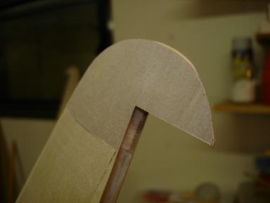 Die Idee war einen Balsakern mit Sperrholz zu beplanken. Dieser Kern wurde so lange geschliffen bis der Absatz etwa die 0,6mm der Beplankung erreicht: