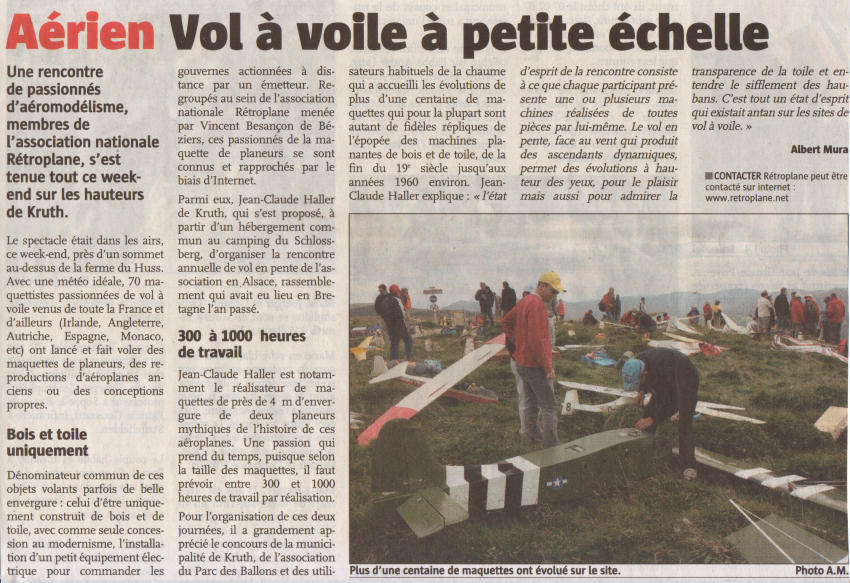 Ci joint un petit article paru dans le journal local, toujours marrant avec quelques coquilles, entre autre Jean Claude ferait des planeurs de presque 4m Wink