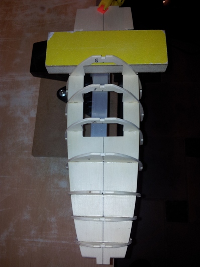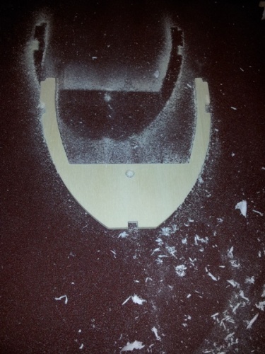 Heute blieben mir nach dem Dienst nur einige Stunden, die habe ich aber gut genützt und geschnitten und geschliffen, jetzt fehlen nur noch 4 Spanten. Vom ein fräsen der Ausschnitte für die Rumpfgurte gibt's dann wieder Bilder, hoffe das funktioniert dann auch so wie ich mir das vorstelle.
