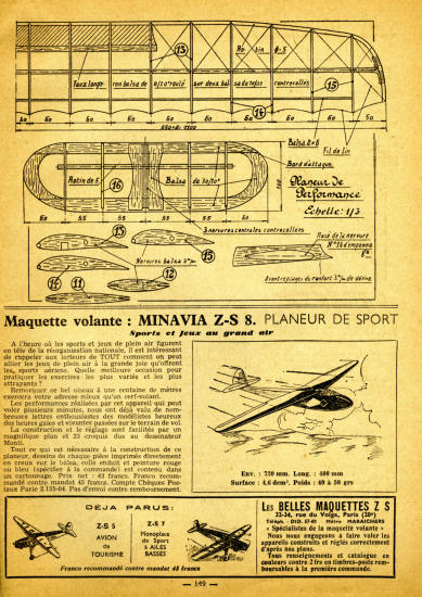 L'Aéronautique Condorcet "achète à Georges Sablier la liasse du planeur biplace à poutre du même type que celui du CA Créteil avant-guerre". Comme le numéro spécial est consacré aux modèles réduits Jacques Lerat ne s'étend pas plus, les membres de l'Aéronautique avait commencé la construction avec le menuisier du lycée. Cela se situait fin 40, début 41.
