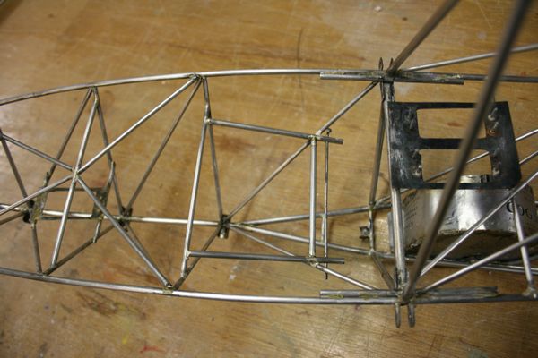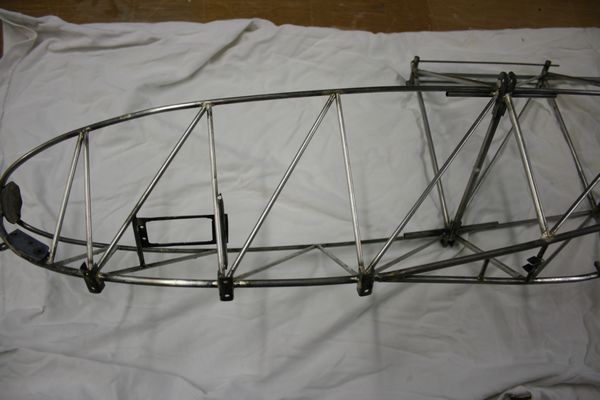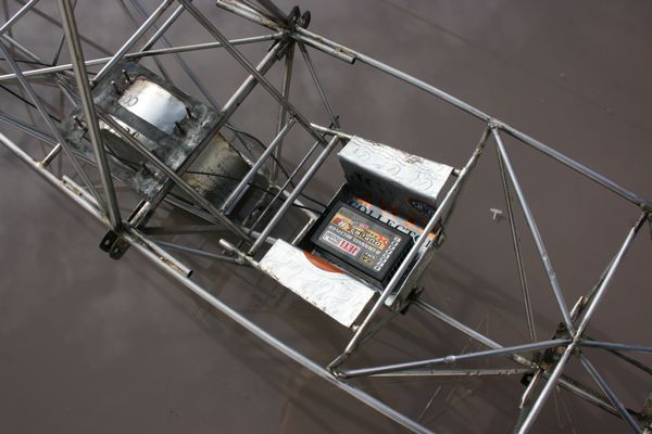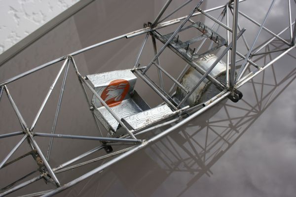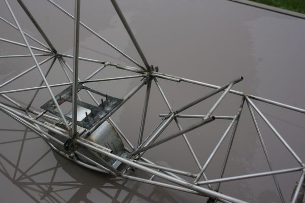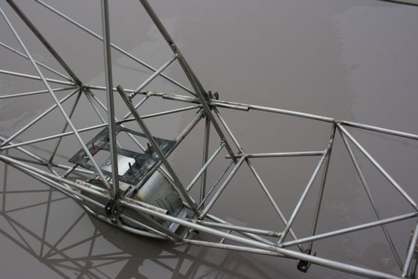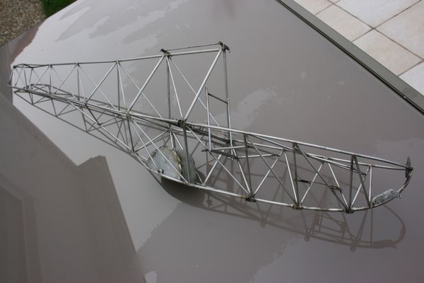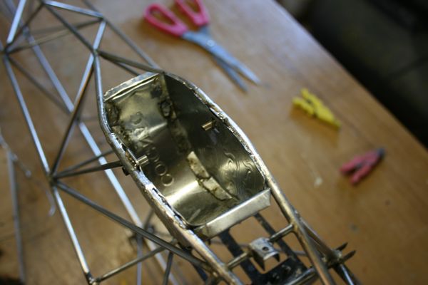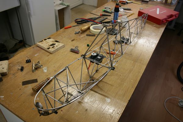 L'armature du siège est en place. Le dossier est rabattable pour, on ne sait jamais, pouvoir accéder aux servos arrières et au câblage des ailes.