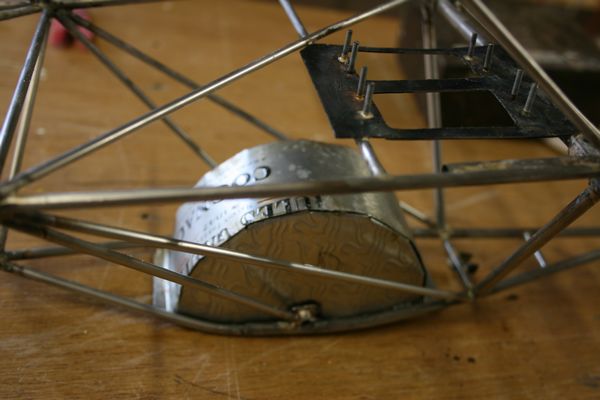 Le support de récepteur, brasé à l'étain et caché sous le siège:
