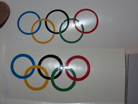 Next the decals, made by my friend Adri. We had a long discussion about the thickness of yhe olympic rings. After downloading these rings it looks they are different as the onn one of the sparse photo's