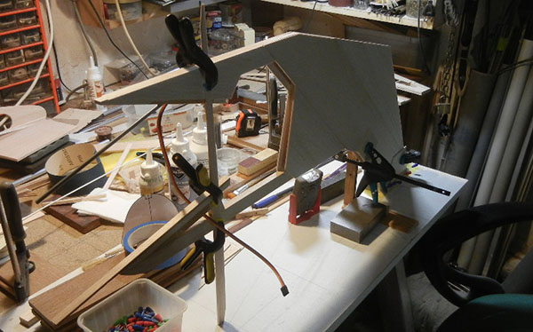 L'ensemble sera ensuite coffré en balsa de 3 ; quelques baguettes en sifflet seront de la partie pour bien épouser les courbes…