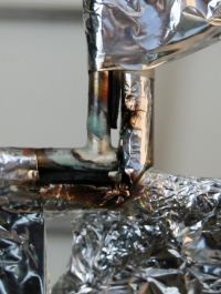La verrière, toujours le même principe: cintrage et ajustage des tubes d'embase, l'assemblage de la pointe avant se fait sur le fuselage en le protégeant de papier alu. Assemblage des 2 montants verticaux avec le tube cintré du haut de cabine, puis assemblage de cet ensemble sur l'embase. pose du tube centrale, puis des 2 tubes horizontaux hauts.