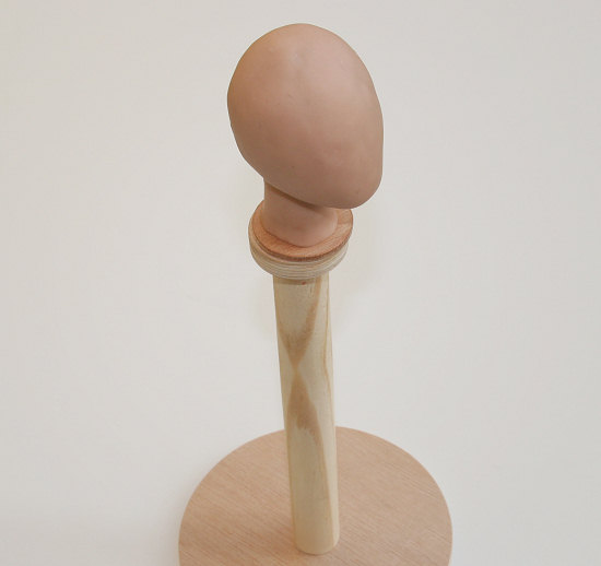 Ce premier essai a été fait entièrement en Super Sculpey, c'est une erreur car la tête a du mal à se tenir sous le poids de ce gros volume de pâte. La forme de départ est pour moi l'étape la plus difficile à réaliser, elle est déterminante pour la forme générale du visage. Les prochaines têtes auront un noyau en papier aluminium froissé, cela permet de bien maintenir la tête et son cou et aussi d'utiliser un peu moins de pâte.