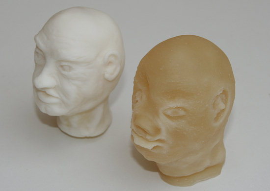 Moules en FORMAFORM Les moules de ces dernières têtes vont être réalisés avec du Formaform, c'est un produit que l'on coule après l'avoir chauffé et qui est éventuellement réutilisable en le rechauffant, une alternative beaucoup moins onéreuse que le silicone.