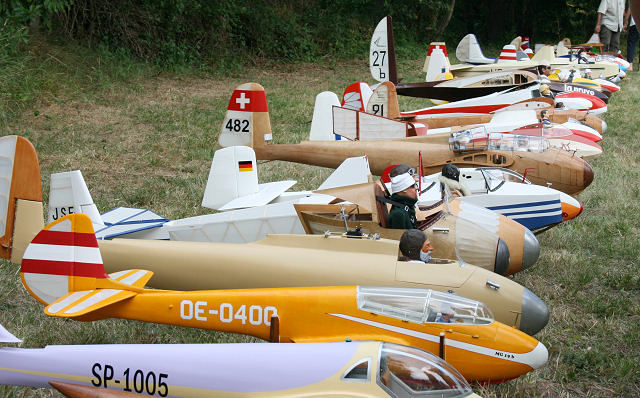 Cette année, quelques nouveaux Aéromodèles Antik. Construits sur la base de vieux plans de planeurs de vol libre équipés RC, la plupart ont des formes originales très atypiques. Ces machines permettent de voler à la pente sans risque lorsque les conditions ne sont pas encore bien établies ou en soirée quand le vent se calme. Nous encourageons vivement tous les participants à construire ce genre de modèles,