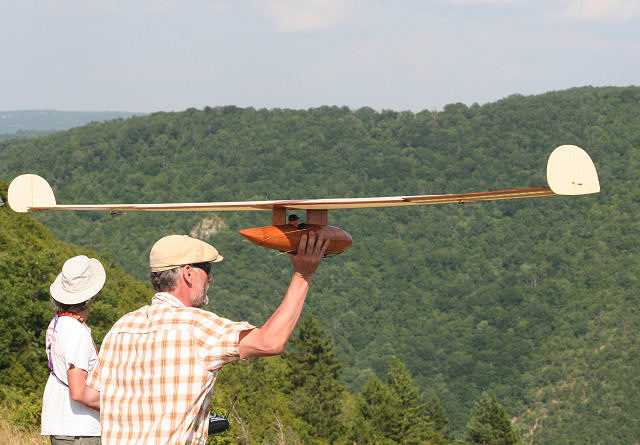 L'aile volante Storch V construite par José, ici lancée par Lolo
