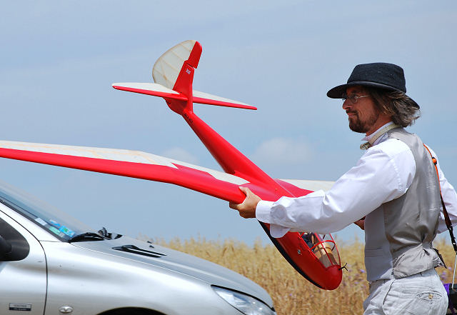Trois magnifiques pilotes retro 1/3 et 1/4 seront cependant attribués selon des coups de coeur. Jean-Paul en recevra un pour sa superbe remontée du trou avec son Pou planeur et l'audace qu'il a eu pour faire voler tout le week-end ce planeur. Laco également, pour sa belle remontée du trou le mardi avec son gros MG12a, et pour être le participant venu le plus loin, de Slovaquie, ainsi que sa participation active sur le forum et la jolie construction en bois verni du Sperber Junior. Marc se verra attribuer également
